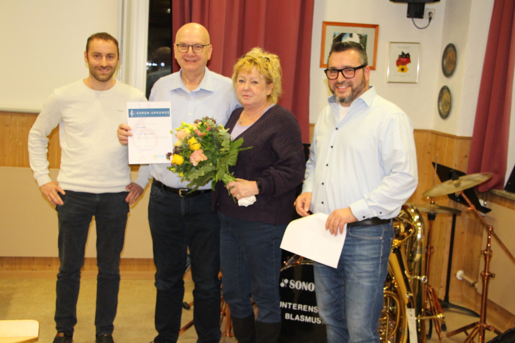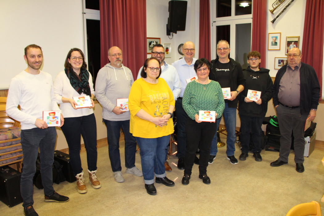 Für die vorbildliche Teilnahmen an allen bzw. fast allen Proben, Auftritten und Ständchen bekamen Claudia Deuschle, Mika Deuschle, Jochen Deutsch, Thomas Kurz, Stephan Mögerle, Andreas Opifanti, Anna Person, Stefan Schleich, Klaus Wagner und Peter Walitsch ein Dankeschön überreicht.