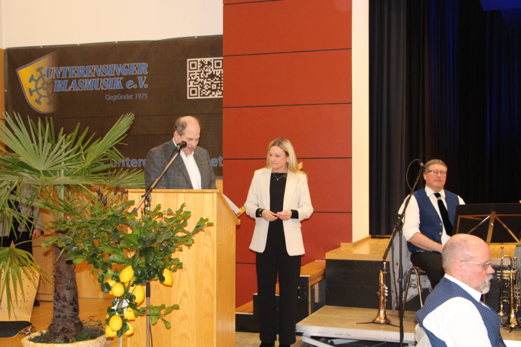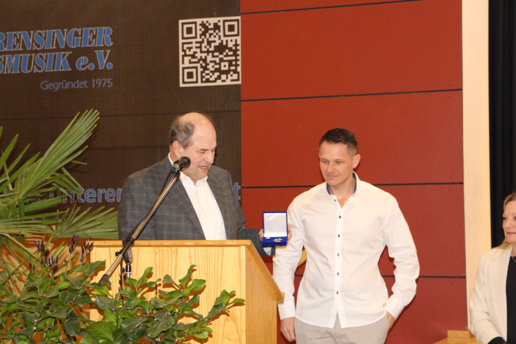 Ein besonderer Programmpunkt waren die Ehrungen verdienter Mitglieder, vorgenommen vom Blasmusikverband Esslingen, vertreten durch Markus Niebauer. Nadine Grossmann erhielt die Ehrennadel in Gold für 30 Jahre aktive Mitgliedschaft. Ingo Wagner wurde mit der Verdienstmedaille in Silber sowie der Ehrennadel für 15 Jahre Tätigkeit als Schriftführer ausgezeichnet.